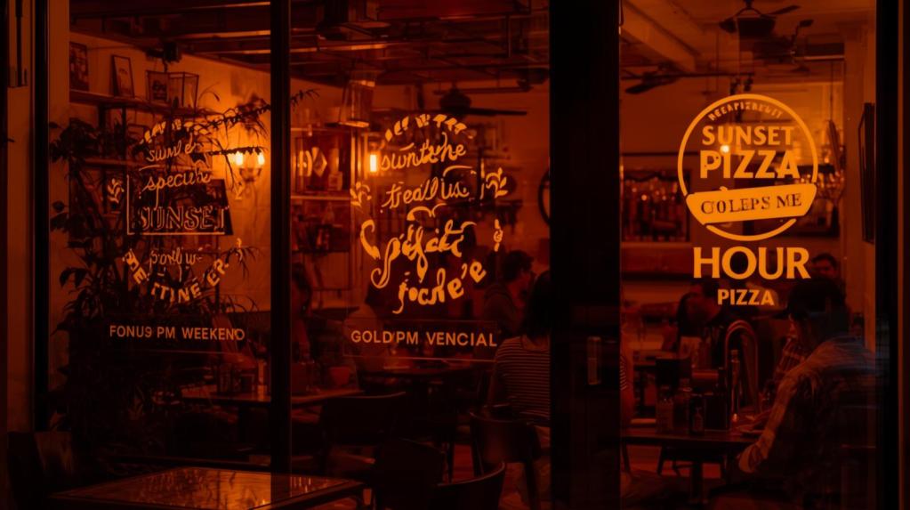 Pick a 60-90 minute window on weekend evenings, say 5:30-7:00 PM, and offer a special deal ONLY during that time. Call it your “Sunset Special” or “Golden Hour.” Make the branding warm and golden and time-sensitive.