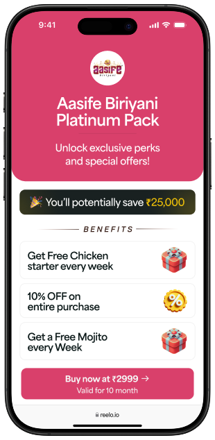 A restaurant membership program with Reelo lets your guests pay a fixed amount upfront in exchange for exclusive perks and benefits like free items, discounts, or priority service. You create the membership plan in our Reelo dashboard, and once customers buy in, they return regularly to redeem their benefits. This not only builds customer loyalty but also gives your restaurant predictable, prepaid revenue